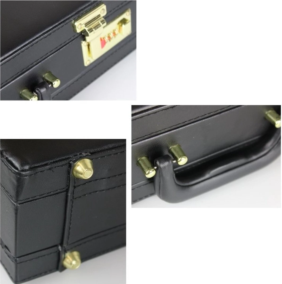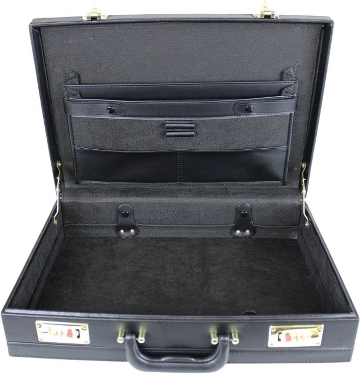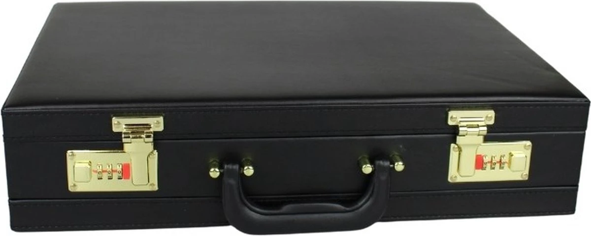 Attaché koffer met luxe binnenkant en dubbele cijferslot. De binnenzijde van de deksel is voorzien van een uitgebreid verstelbare organiservak. De attaché is geschikt voor A4 documenten,laptop en bevat diverse opbergmogelijkheden voor o.a. pennen en visitekaartjes. De koffer sluit af met een dubbel cijferslot die goudkleurig is. Het cijferslot kan eenvoudig gewijzigd worden, hier zit een beschrijving bij toegevoegd. Kortom een handige attache koffer met een zakelijke/luxe uitstraling.