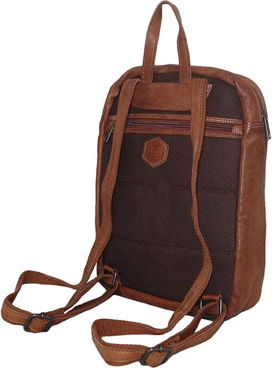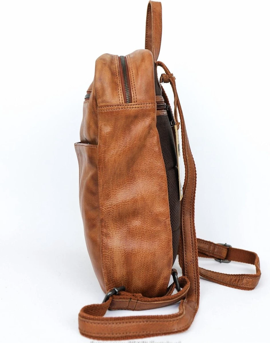 Mooie grote leren rugzak uit de Callisto-Pelle serie van Bear Design. De tas is gemaakt van prachtig rundleer. Het ruime hoofdvak is afsluitbaar met een rits. In het hoofdvak zit een ritsvak, een steekvakje en 2 pennenlussen. Tevens zit in het hoofdvak een gewatteerd tabletvak (24 x 27 cm). Op de voorzijde van de tas zitten twee ruime ritsvakken. Op de achterzijde zit ook nog een groot ritsvak. Aan de bovenkant zit een handvat/lus waarmee je de rugzak makkelijk en snel op kunt pakken of even in de hand kunt dragen. Het rugpand is volledig gewatteerd voor optimaal draagcomfort. De twee schouderbanden zijn verstelbaar.