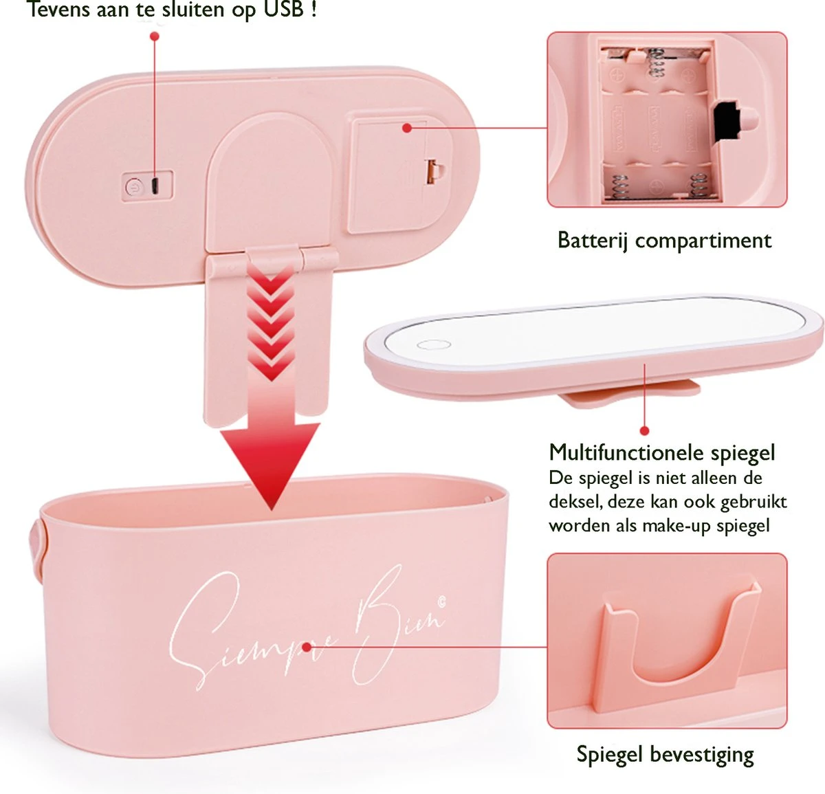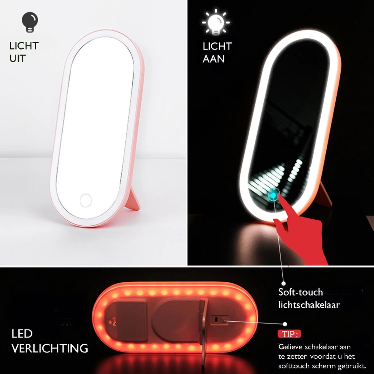 Beautycase Rose – LED-spiegel – Make Up – Make-up Org – Make-up Organizer Met Spiegel – Make-up Koffer – Beautycase – Multifunctioneel – Reisformaat