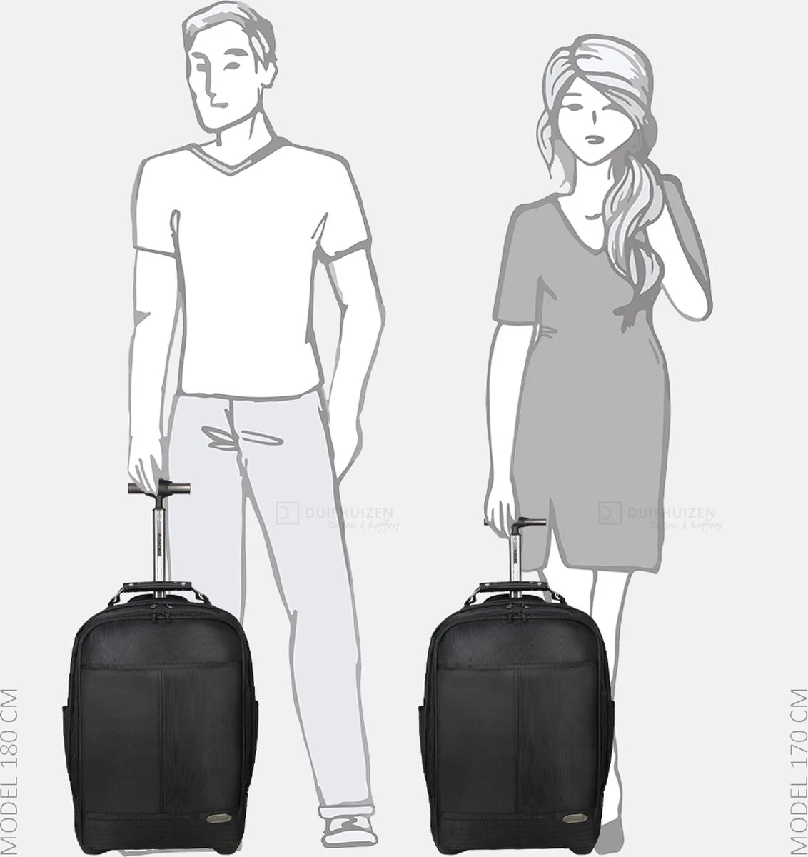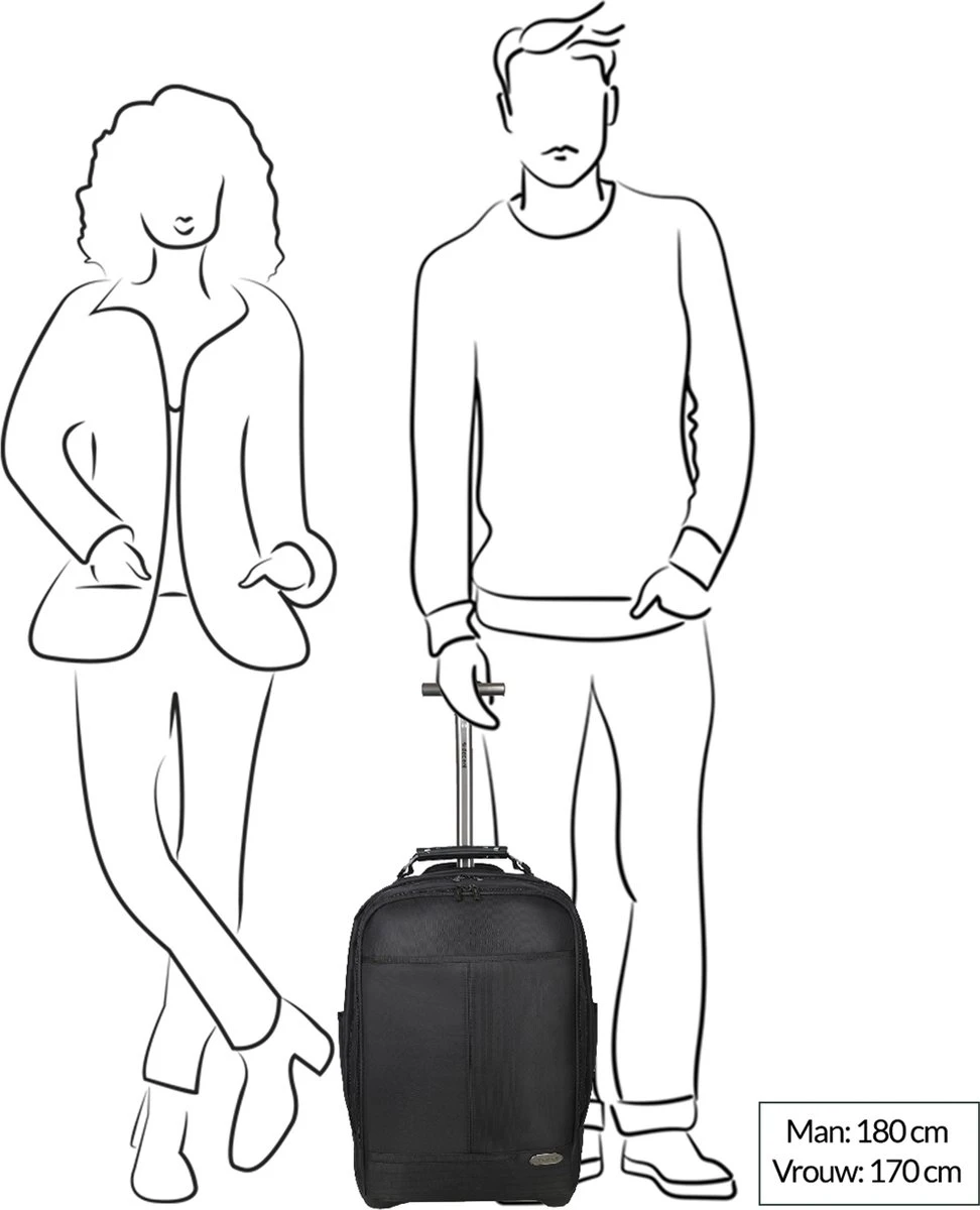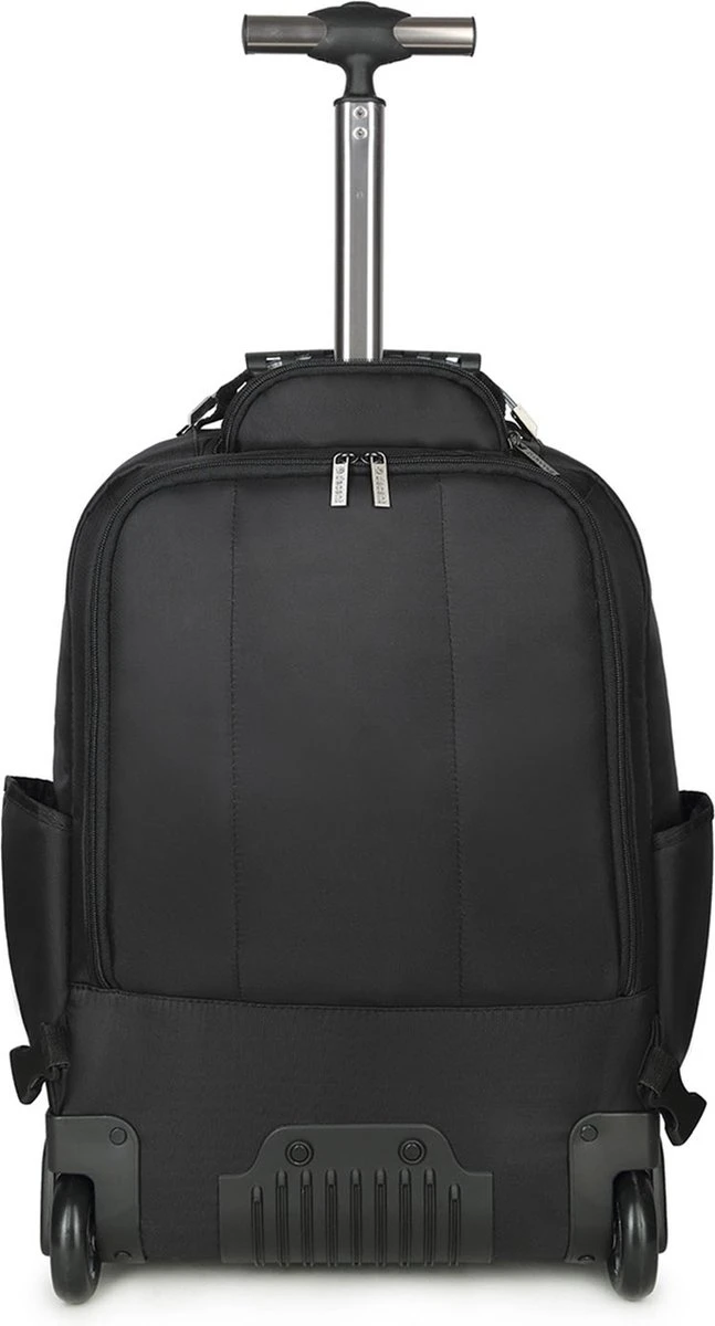 Een extra ritsvak helemaal op de voorzijde is handig voor bijv. je telefoon of papieren die je snel bij de hand wil hebben. Op beide zijkanten zit een insteekvak voor een drinkfles of paraplu. Met het handvat op de bovenkant kun je de rugzak snel en makkelijk oppakken. De 2 wielen, verstelbare mono-tube trekstang en 2 verstelbare, gewatteerderde schouderbanden zorgen voor optimaal reiscomfort.