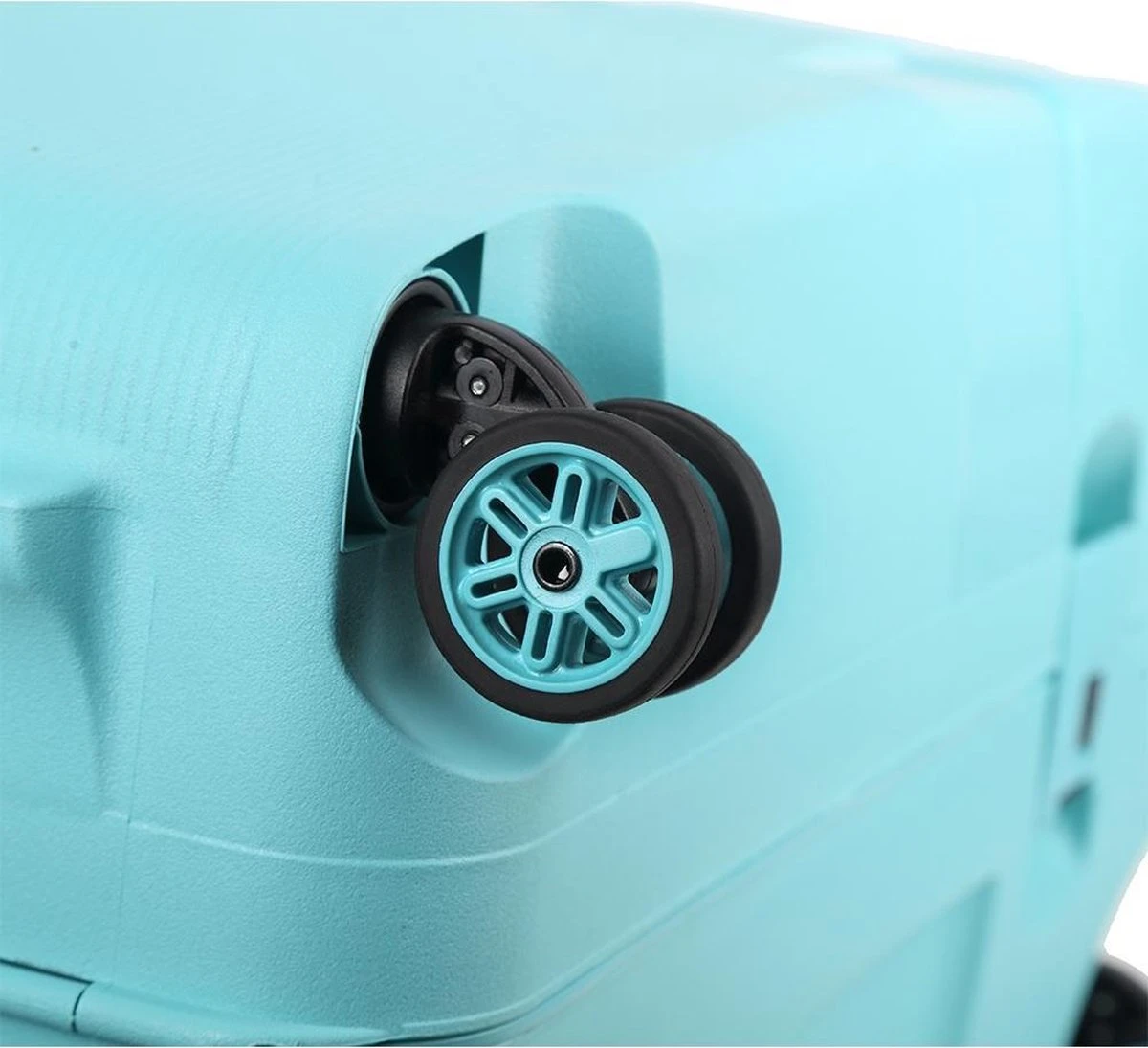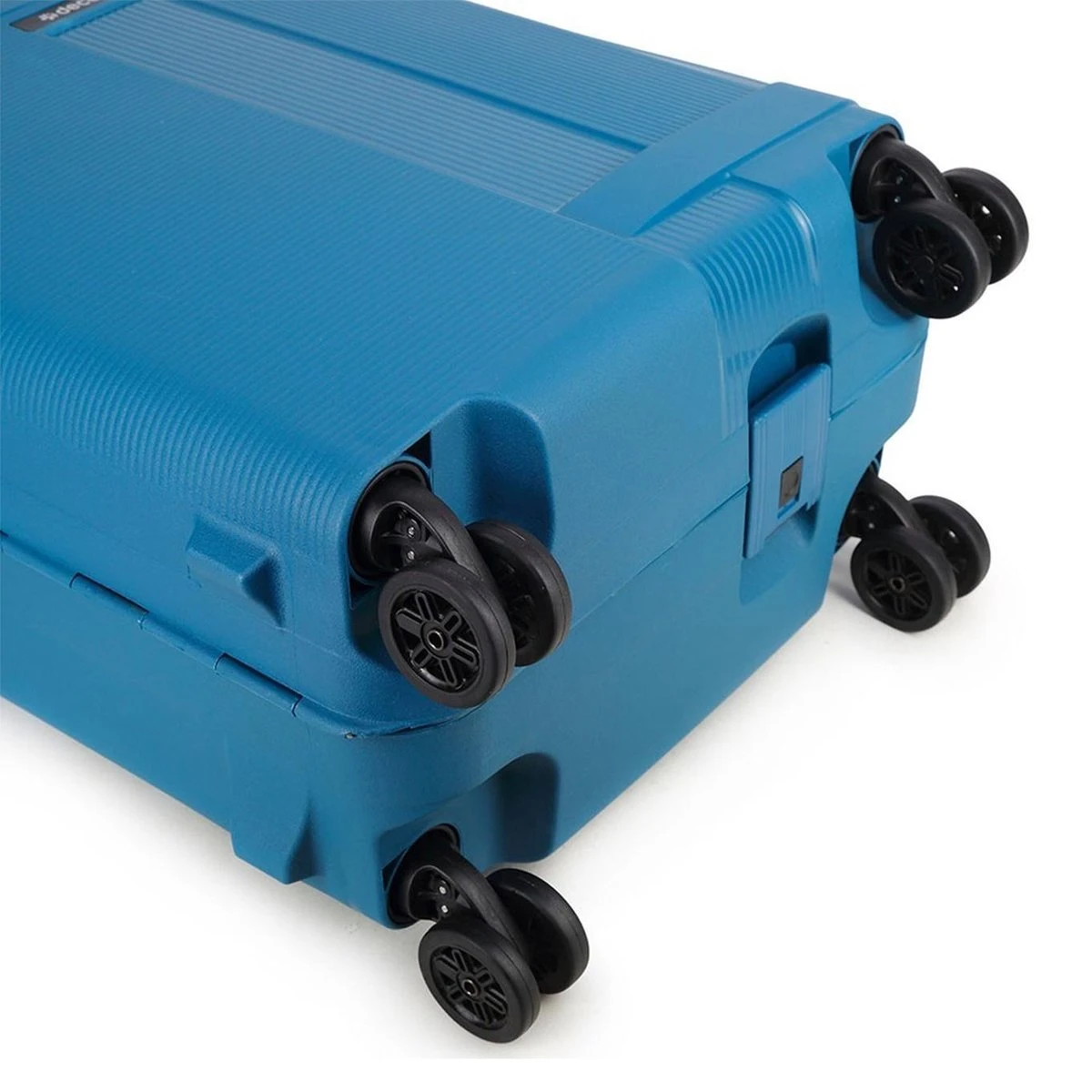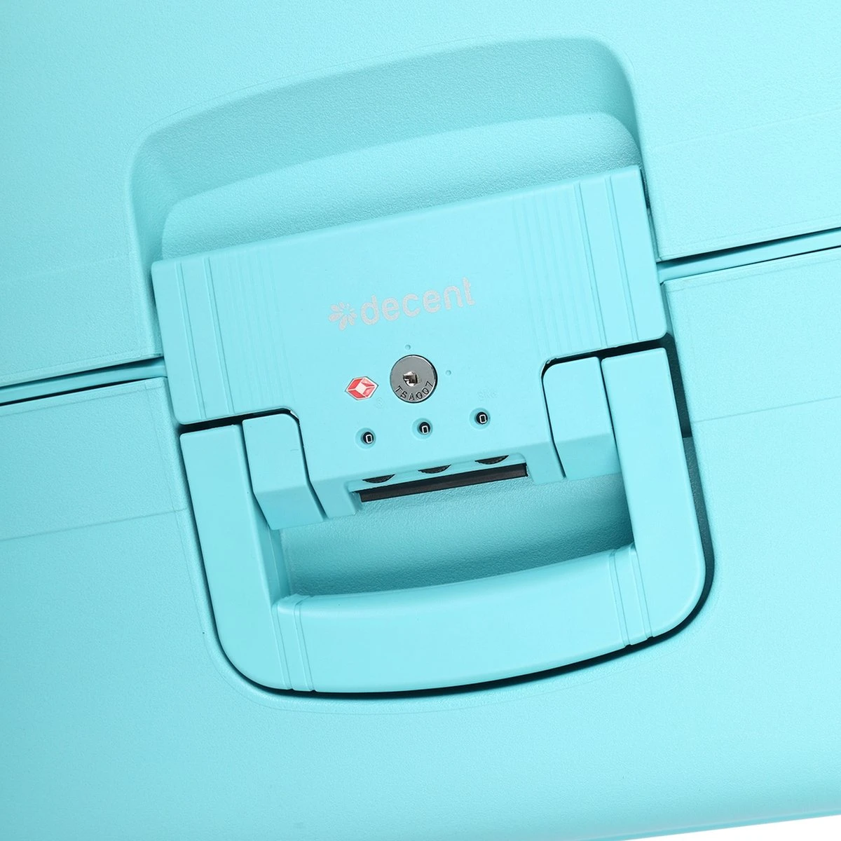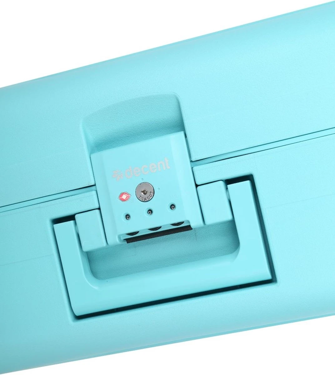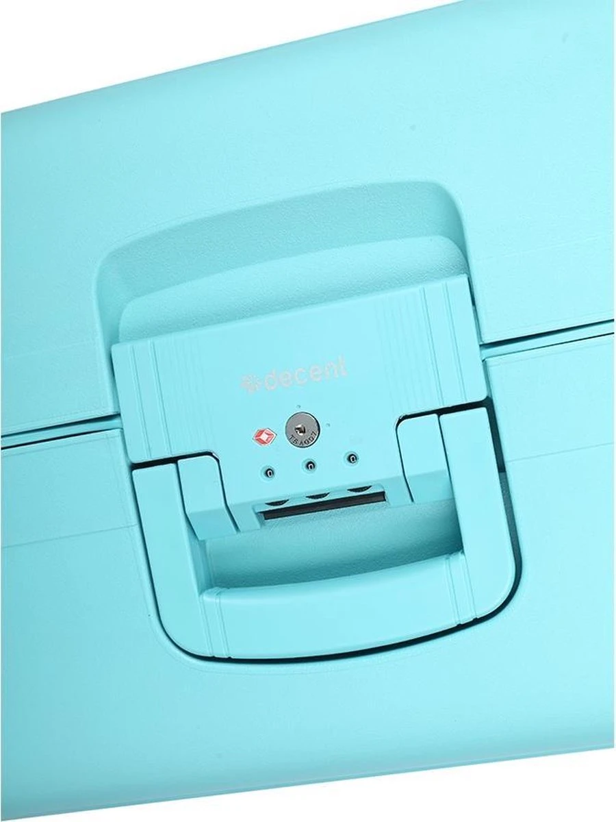 Middelgrote polypropyleen hardschalen koffer uit de Transit serie van het merk Decent. De koffer is rondom voorzien van drie kliksloten. Op de boven-en onderkant zitten sloten die u vastklikt en op de zijkant zit het hoofdslot dat een TSA cijferslot is. De koffer heeft een zwarte voering, een tussenschot met rits, een extra ritsvak en is voorzien van spanbanden. Handvat op bovenkant en zijkant en voorzien van een comfortabel dubbel 4-wiel systeem.