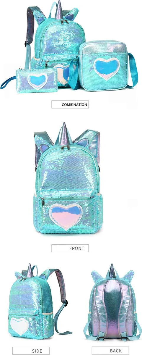 Eenhoorn Schooltas – Rugzak – Unicorn Rugtas 42 X 30 X 14 Cm- Kinderrugzak – Sequin- Luxe Giftset – Pailletten – Inclusief Tas + Etui – Turquoise – Voor Al Je Speelgoed En Schoolspullen