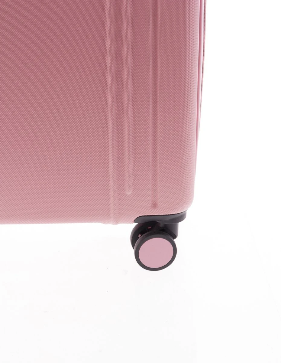 Mooie middelgrote hardschalen ABS koffer met dubbele zwenkwielen. Koffer is voorzien van een ritssluiting rondom en een extra expandable rits waarmee de koffer qua volume te vergroten is van 72 naar 82 liter. Binnenin gevoerd en voorzien van tussenschot met ritssluiting, ritsvakje en spanbanden. Koffer is op slot te zetten middels een vast cijferslot op de zijkant van de koffer. Handvat op boven- en zijkant en voorzien van comfortabel 4-wiel systeem.