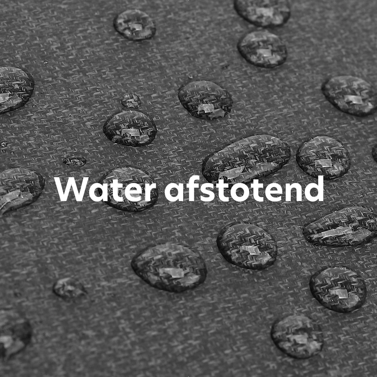 De laptoptas is gemaakt van polyester Oxford-stof. Dit materiaal is slijtvast, kleurecht en waterafstotend. Let er wel op dat ‘waterafstotend’ niet hetzelfde is als ‘waterdicht’. Als de rugtas erg lang in de regen gebruikt wordt, kan er water door de naden lekken.