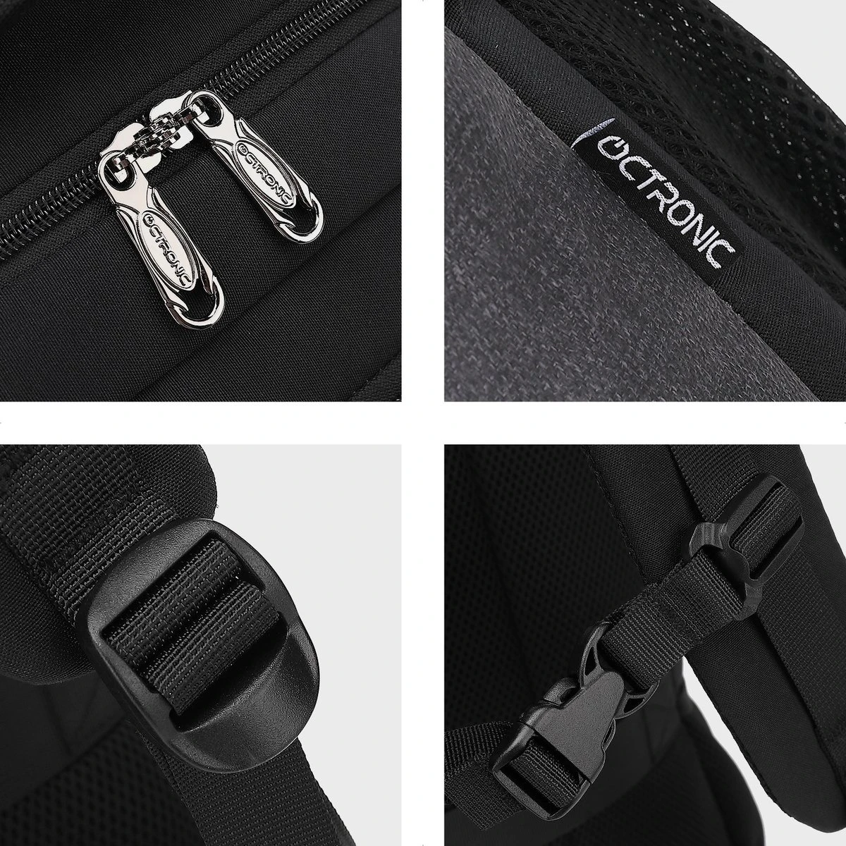 Deze stevige rugzak van Octronic© is erg geschikt als laptoptas voor school en werk. De ideale rugtas om te reizen met je laptop en tablet voor je dagelijkse werk, of op vakantie! De rugzak is gemaakt van duurzaam, waterafstotend polyester materiaal waardoor je laptop veilig op de plaats van bestemming aankomt.