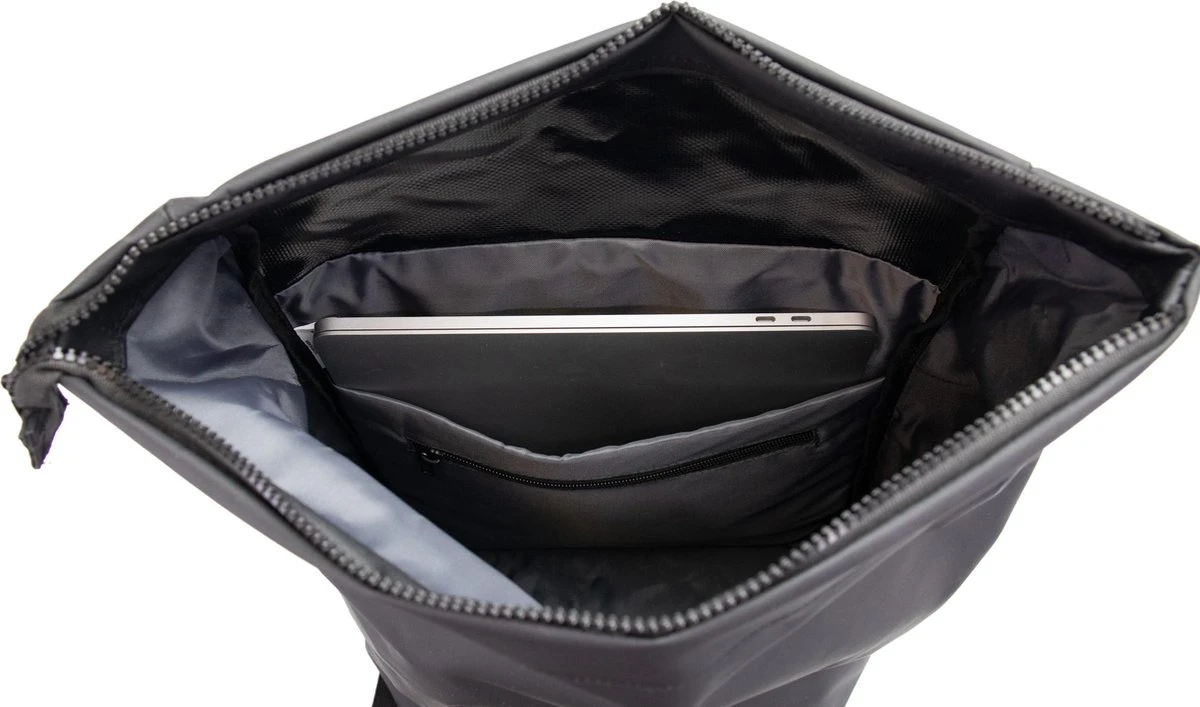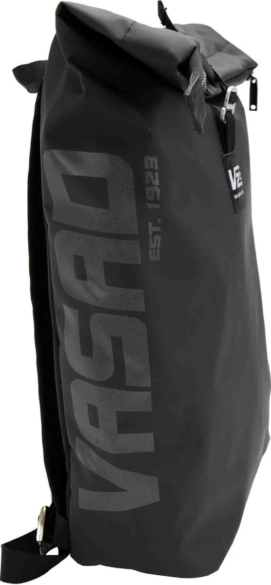 Een moderne, stevige en praktische rugzak (± 20L) met handige rolsluiting. Het waterafstotende materiaal, de grove ritssluiting en de metalen gesp zorgen voor een stoere uitstraling. Door de grote opening vind je gemakkelijk boeken, (sport) kleding of andere attributen. Laptop of tablet berg je veilig op in de gepolsterde sleeve, met handig extra ritsvak. De reflecterende VASAD-print maakt je ook ’s avonds extra zichtbaar. Verkrijgbaar in 6 kleuren.
