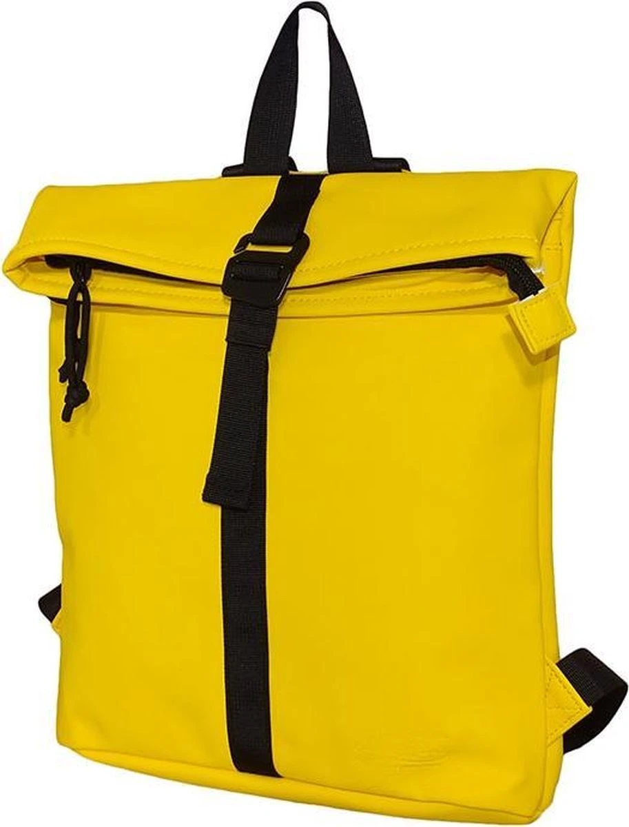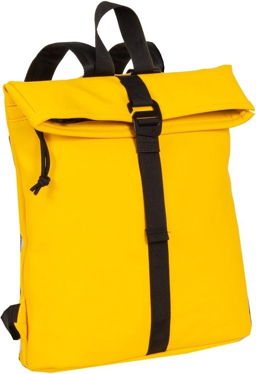 Stoere middelgrote Waterafstotende rugzak uit de Mart serie van New Rebels. De rugzak is gemaakt van tarpaulin. Dit waterafstotende materiaal zorgt er voor dat de tas tegen een stootje kan en jouw eigendommen droog blijven tijdens verschillende weersomstandigheden. Het hoofdvak is afsluitbaar middels een ritssluiting en haaksluiting. De rugzak is oprolbaar ofwel qua volume wat te vergroten danwel te verkleinen. Binnenin zit een ritsvakje en twee steekvakjes voor bijv. je telefoon en sleutels. Op de voorzijde van de tas zit een ritsvak waarin je spullen kwijt kunt die je snel bij de hand wilt hebben. Op de achterzijde zit ook een ritsvak. De twee schouderbanden zijn in lengte verstelbaar. Met de lus aan de bovenkant kan de tas makkelijk opgepakt worden of in de hand gedragen worden.