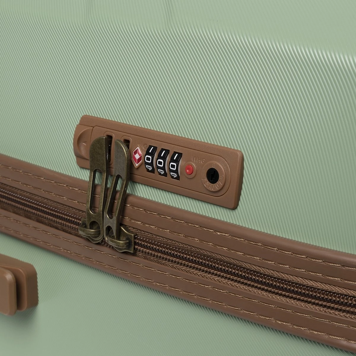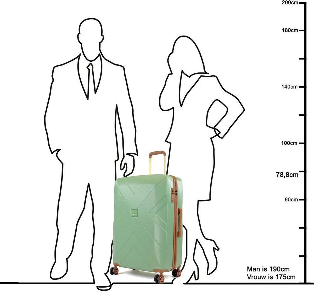 Grote spinner uit de Florence serie van Oistr. Deze prachtige koffer is met haar design en frisse kleurstelling gericht op de moderne reiziger. De koffer is gemaakt van ABS en licht van gewicht. De vorm van de schaal is klassiek met een modern touch in de vorm van een gekruiste baan over de schaal. De koffer heeft een ruime inrichting met aan de ene kant een compartiment met inpakriemen en aan de andere zijde een tussenschot met netvak. De unieke kleurstelling met mat pink of olive green en licht bruin geeft de koffer een prachtige look and feel die doet denken aan de jaren 70. De trekstang is van glimmende gold aluminium en in hoogte verstelbaar. Zowel aan de bovenzijde als aan de zijkant bevindt zich een handvat voor maximaal draaggemak. Dankzij de vier roterende wielen is je koffer makkelijk te vervoeren. Met TSA cijferslot voor zorgeloos reizen van en naar de VS, deze is verzonken (vlak weggewerkt) in de zijkant van de koffer. De koffer is in alle gemakken voorzien en een stijlvolle verschijning tijdens jouw reis.