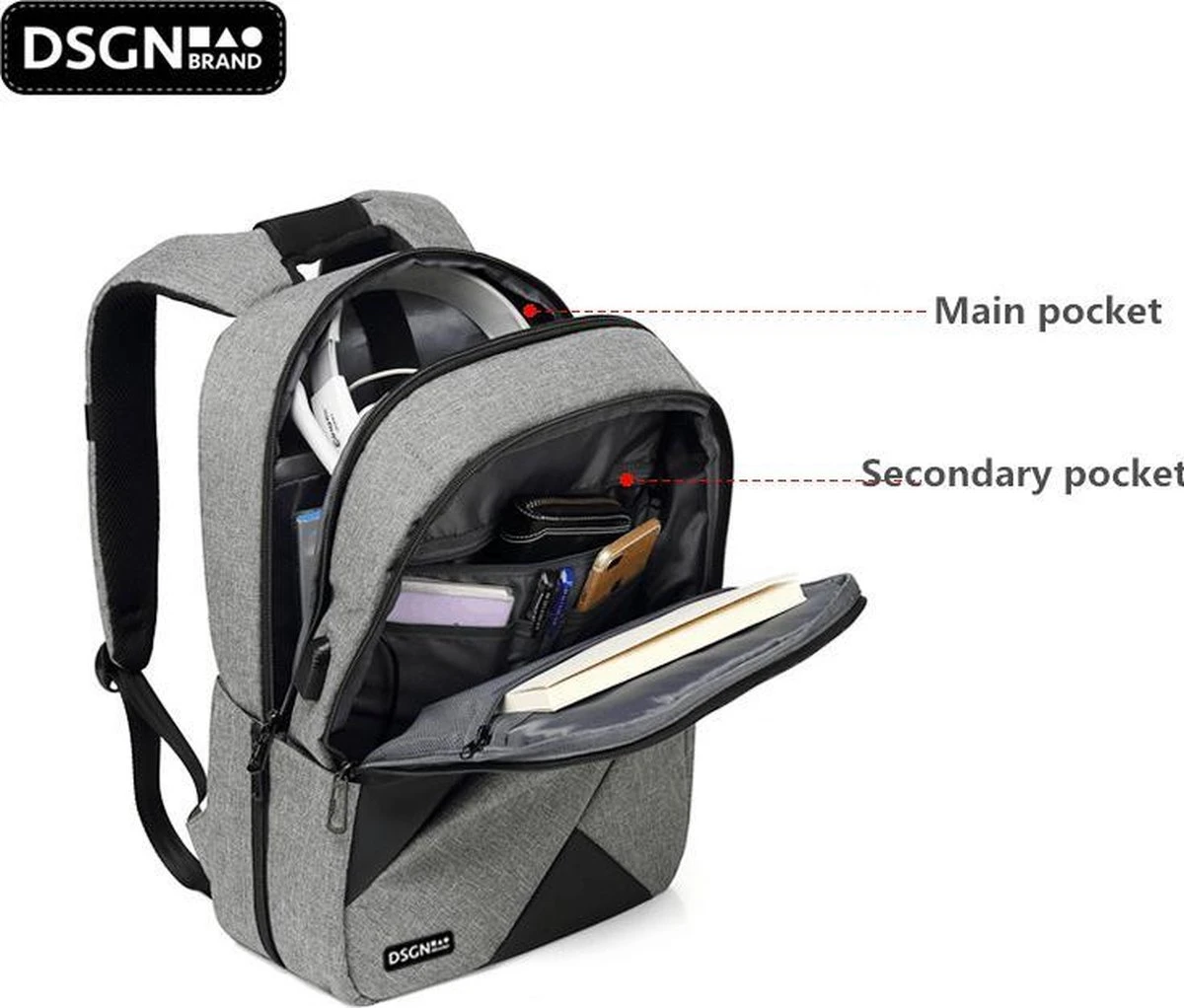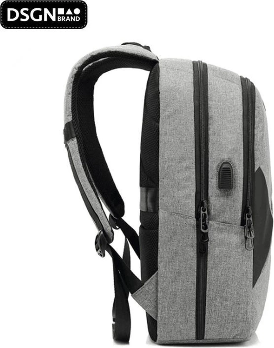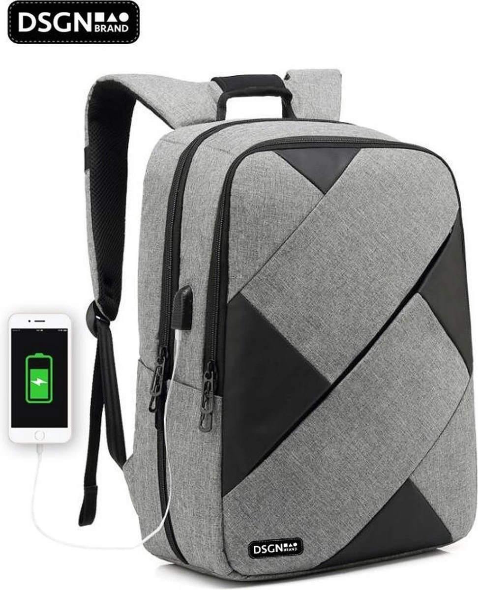 De DSGN BRAND® laptoptas rugtas met USB aansluiting in de kleur grijs / zwart van nylon en PU leer biedt de beste bescherming voor onderweg. De laptop rugtas met Geometric design is geschikt voor laptops van 13 / 14 / 15 / 16 inch. Bovendien is het een echte eye catcher. Het moderne design van de laptoptas rugtas trekt meteen de aandacht onderwerg, in je vrije tijd, werk of school.
