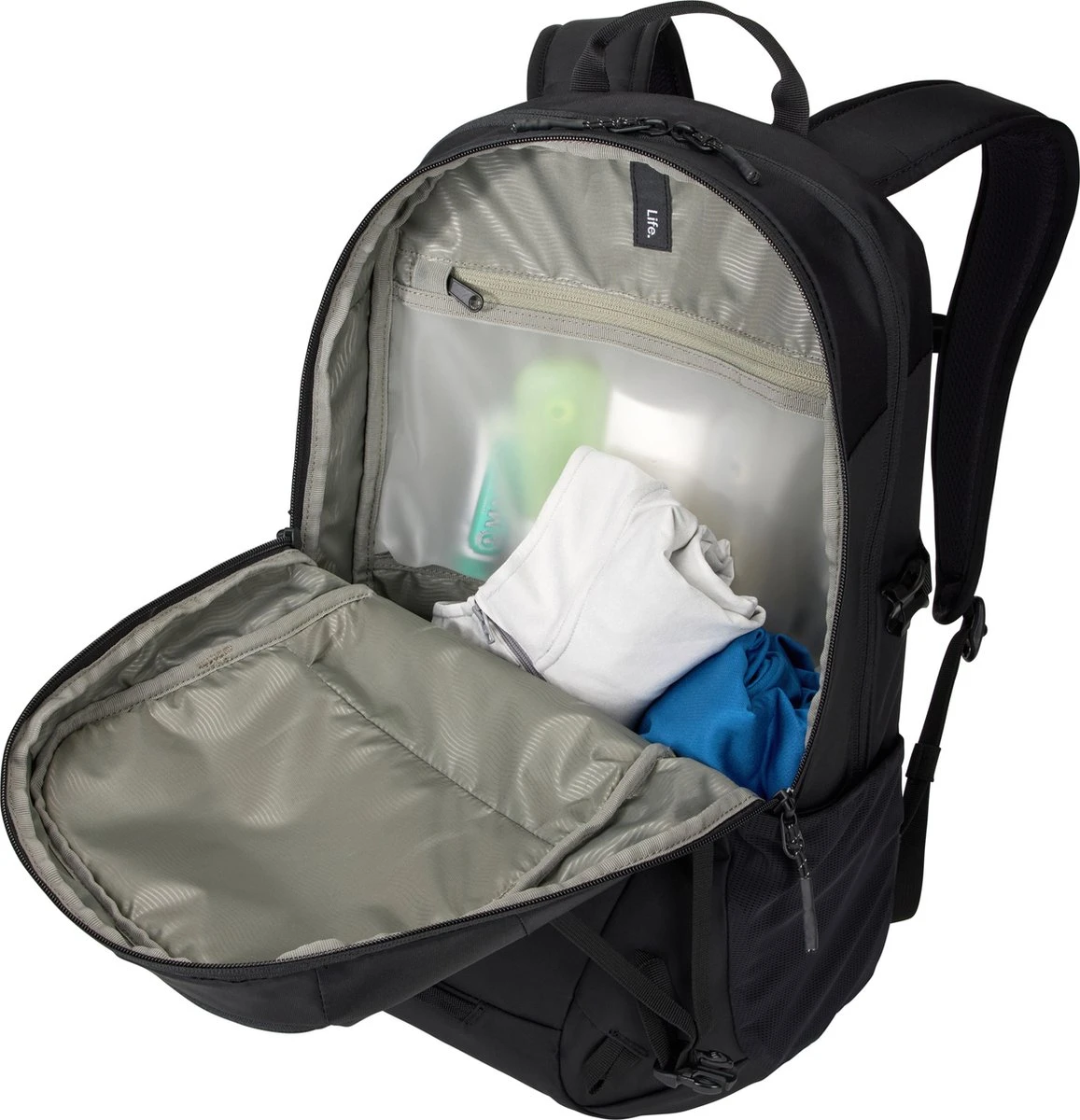 - De mesh zijvakken aan de buitenkant rekken uit voor het vervoeren van een waterfles of paraplu.