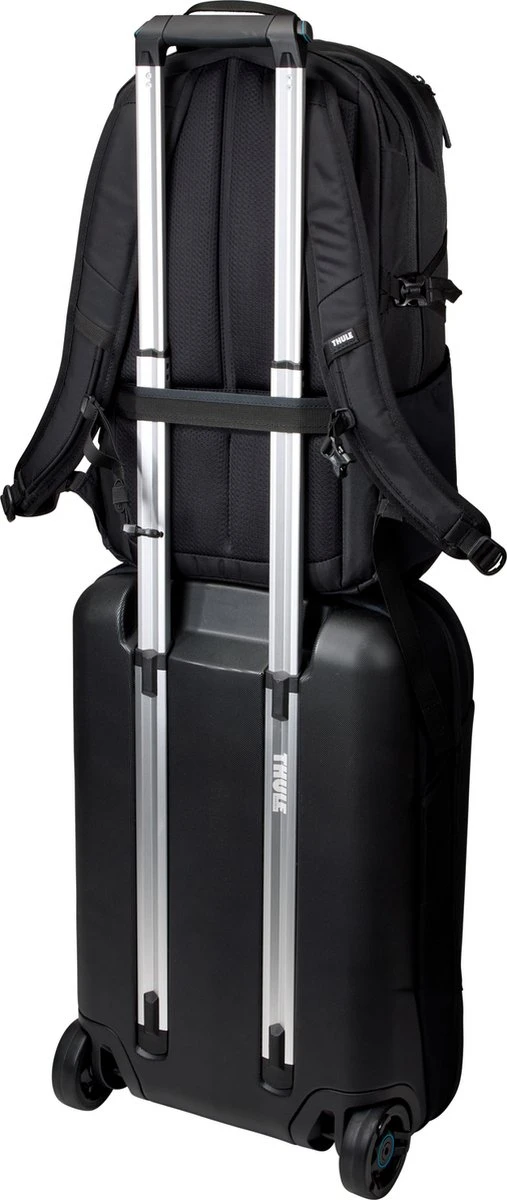 - Het doorgeefpaneel zorgt ervoor dat je de rugzak gemakkelijk kunt bevestigen aan bijvoorbeeld een trolley.