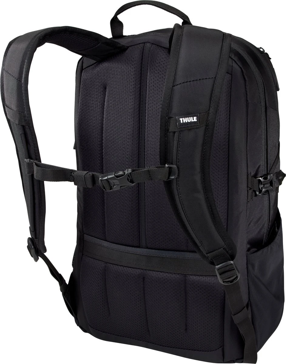 - De borstriem, het gewatteerd achterpaneel met luchtstroomkanaal en compressieriemen aan de zijkant maakt het mogelijk om de bagage te balanceren, waardoor het dragen ervan meer comfortabel wordt.