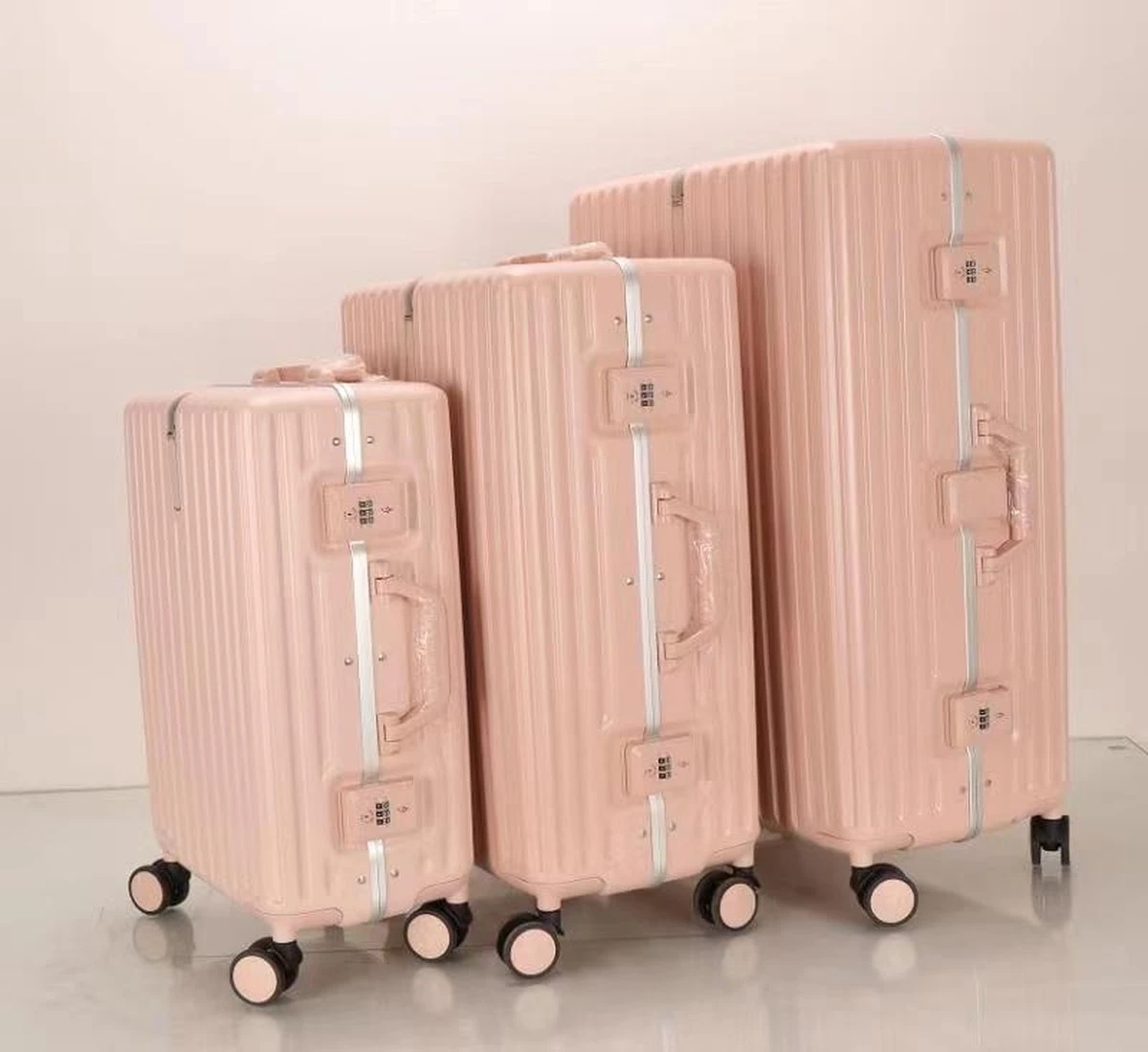 TOP AA Reis Kofferset – Trolleyset 3-delig Met TSA Slot Aluminum Frame, Kleine Cabine En Groot, ABS Luggage, (20+24+28 Inches 3 Pc Set), Roze/pink